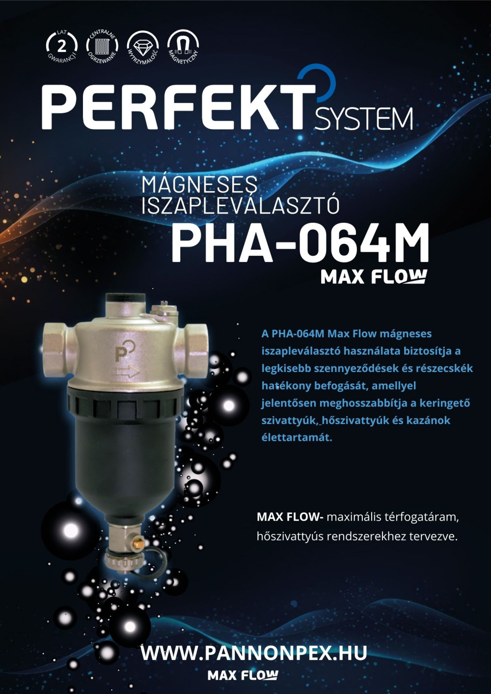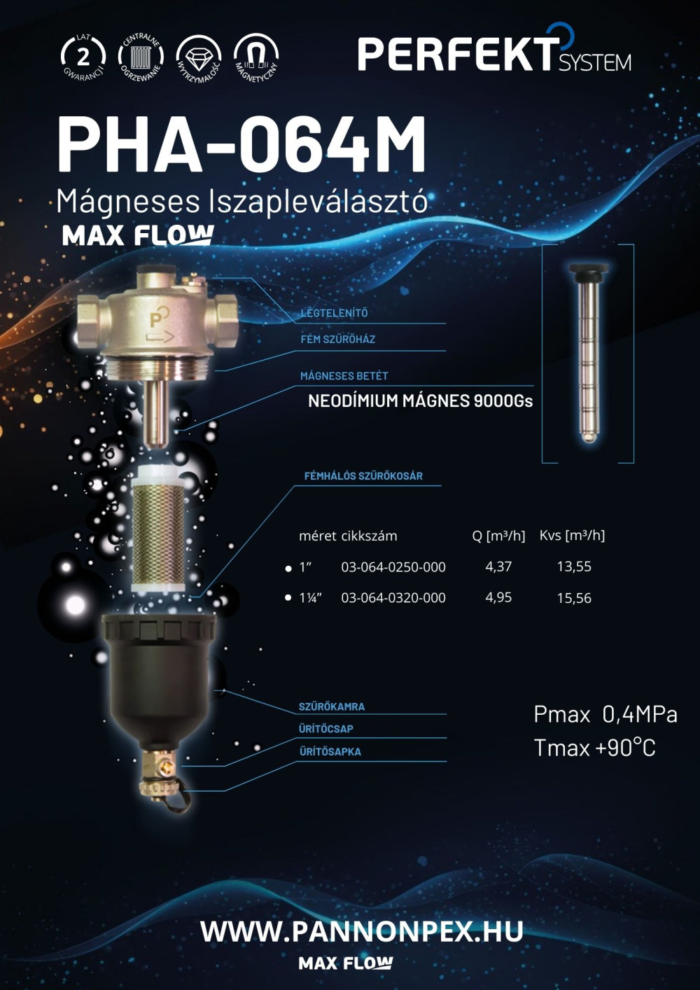 Víz közegre 0-90°C-ig használható